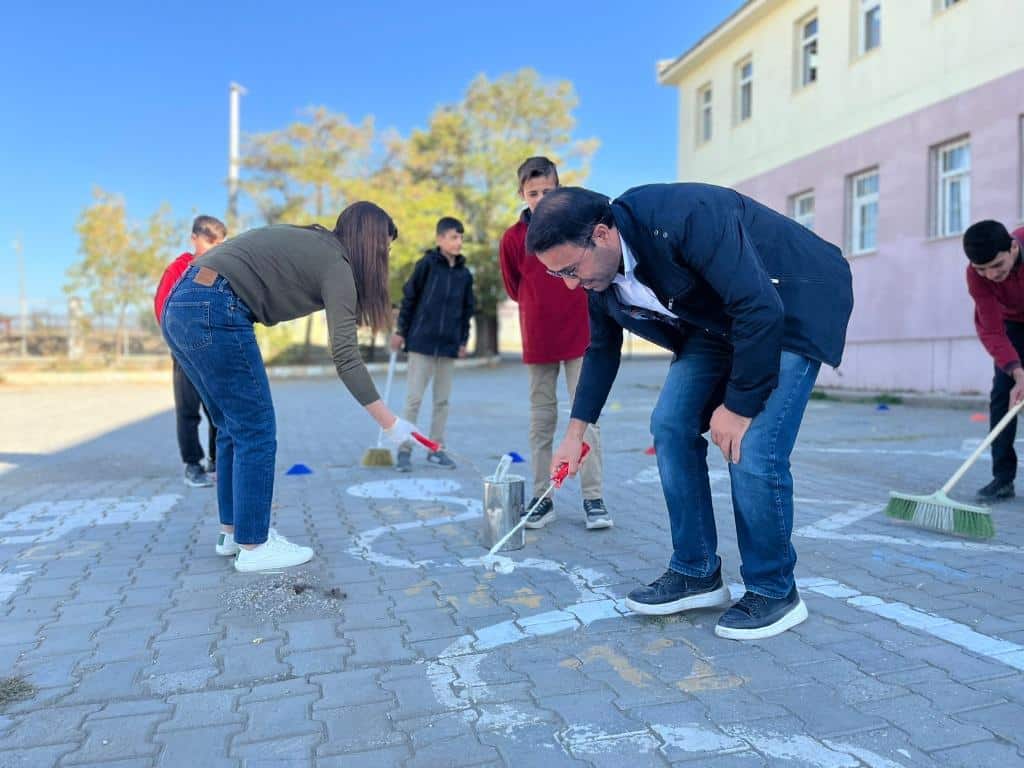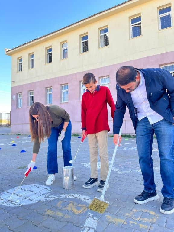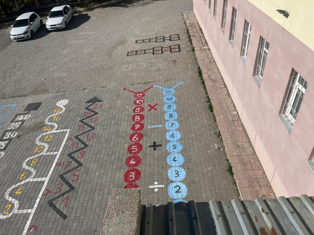 Okulumuz ön bahçesine öğrencilerimize yönelik teneffüslerde aktivite ve oyun ihtiyaçlarını karşılamak için zemin boyaması yapıldı. Emeği geçen öğretmenlerimiz Seval Güven ve Berat Kasap'a teşekkür ederiz.